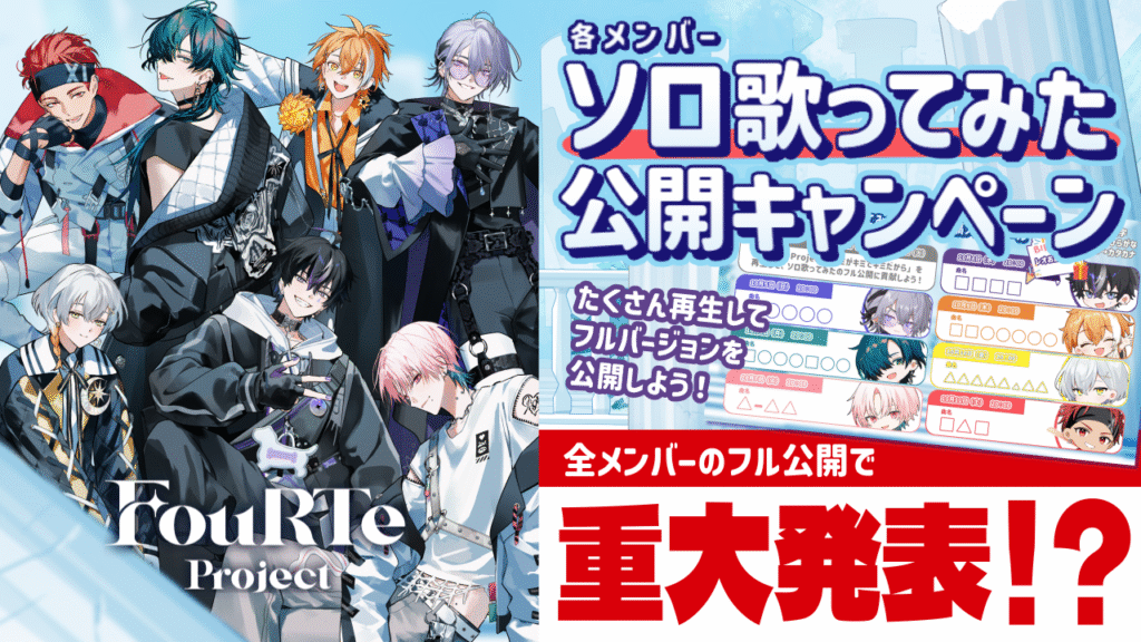 本キャンペーンでは、10月5日(日)から10月11日(土)までの1週間、各メンバーのソロ歌ってみた楽曲におけるサビショート映像をYouTubeとTikTokのFouRTe Project公式チャンネルで毎日20:00に配信します。
